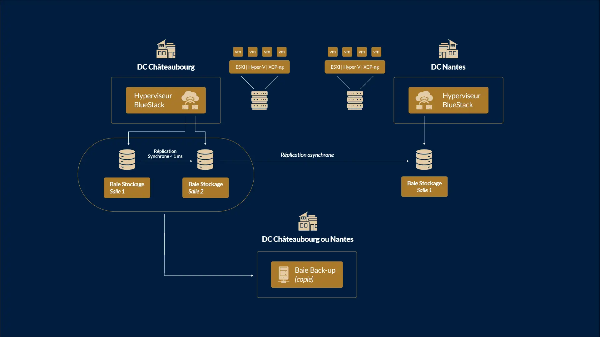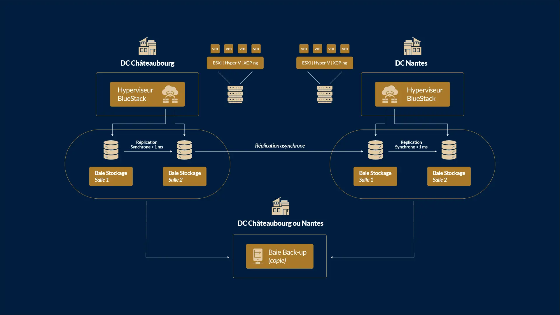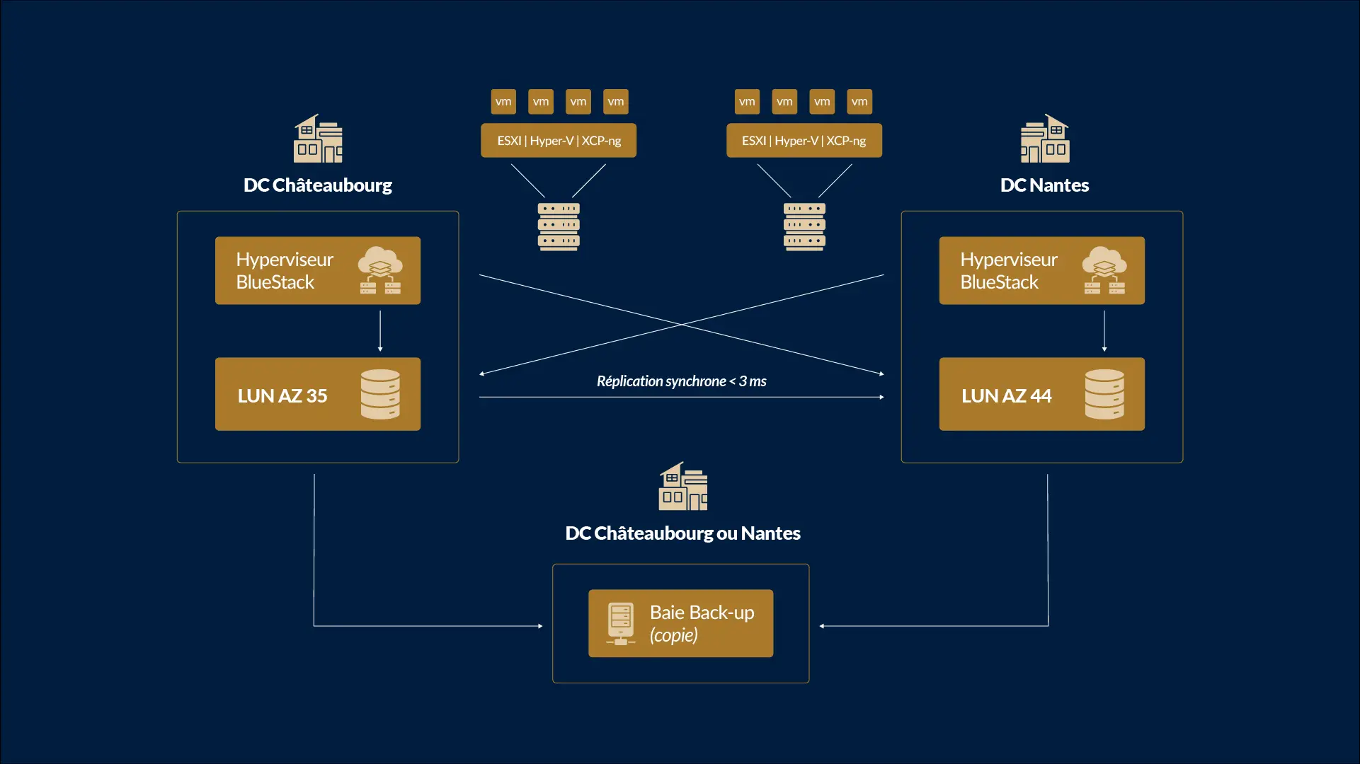 → Continuité d'activité garantie : architecture dual-sites actif/actif entre 2 DC